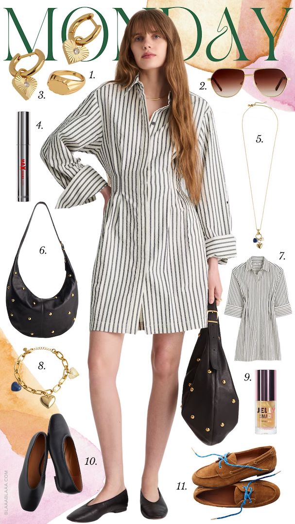 - Madewell – Striped Tucked Mini Shirtdress [Get It Here!]