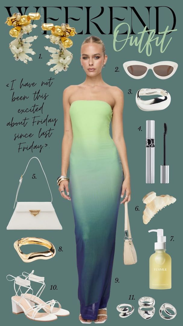 - Princess Polly – Stolen Love Bandeau Mesh Maxi Dress In Green Ombre [Get It Here!]