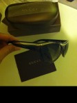Gucci Sonnenbrille für 150 CHF – Frabe Dunkelbraun mit Goldverzierung, kleiner Schriftzug auf der Seite:
